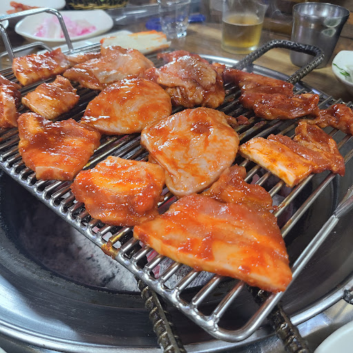 화로구이는 바짝 익혀 크리스피 하게 먹는 걸 추천하신다는 사장님의 말을 듣고 기름이 보글보글 올라오는 시기 한입 먹는다면 천재 양념과 돼지기름이 섞여 올라와 크리스피 하게 먹는 게 매력이다. 2000년대 초 유행이었던 고추장 삼겹살을 맛있게 먹었던 추억을 다시금 상기 시킬수있다.