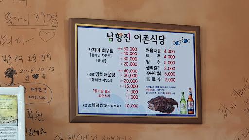 Read more리뷰 보고서 간건데 진짜 꼭 가봐야 한다 정도는 아니지만 꽤 먹을만한 집. 가자미 회무침은 처음 먹어봤는데 세꼬시처럼 썰려서 나오는데 씹을때 이질감이 심하지는 않음. 동네에서 먹을수 있을만한 일반 횟집 가느니 여행 왔으니 이쪽 음식 먹어보고 싶다면 실패는 안 할 정도? 아주 특별하지는 않지만 맛은 있어요. 망치매운탕은 얼큰한 정도는 아니고 아귀를 이용한 빨간 매운탕 정도? 처음 먹어봤는데 살은 부드럽고 다른 부위는 아귀보다는 조금 덜 쫄깃 합니다. 화장실이 위치한 쪽 벽 위에가 뚫려 있는건...