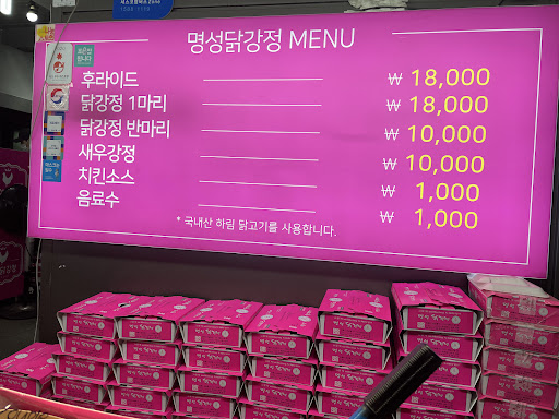 바로 옆의 닭강정 가게도 그렇고 이 가게도 참으로 맛이 없다. 소스나 튀김은 차치하고 닭 살이 퍽퍽함을 넘어서 딱딱한 수준이라 씹는 순간 정말 질이 낮은 고기를 쓴다는 것이 온전히 느껴질 정도인데도 유명 닭강정 체인보다 몇 배는 비싼 가격을 받고 있다.