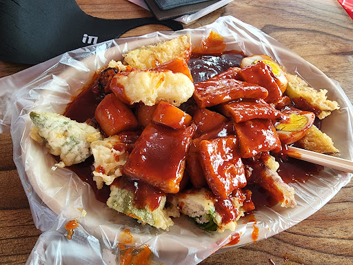They call it curry-flavored tteokbokki, but there’s zero curry flavor—just bland and disappointing. The soondae that comes with it reeks, seriously smells off.
