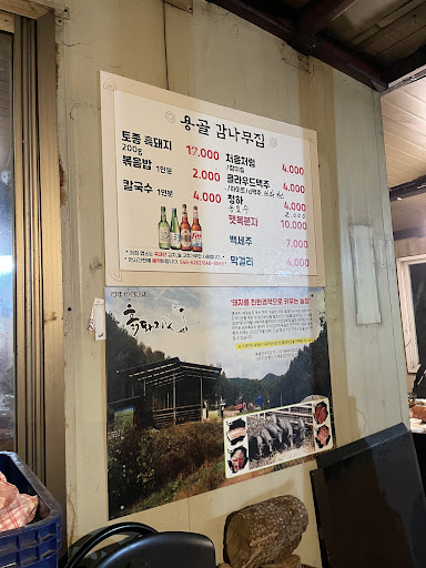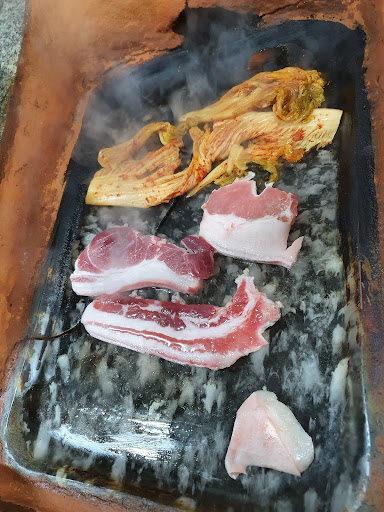 (산골 깊숙이 위치하고 화로를 이용한다는 점이 이색적일 수 있으나, 나의 경우에는 몇 가지 아쉬운 점이 있었다. 불 조절이 용이하지 않는 방식임에도 테이블에 주의가 부족한 편이었다. 토종흑돼지는 살짝 얼려져서 내어지고, 두께나 살과 비계 비율을 고려하면 가격 대비 만족스럽지 못했다. 화장실...