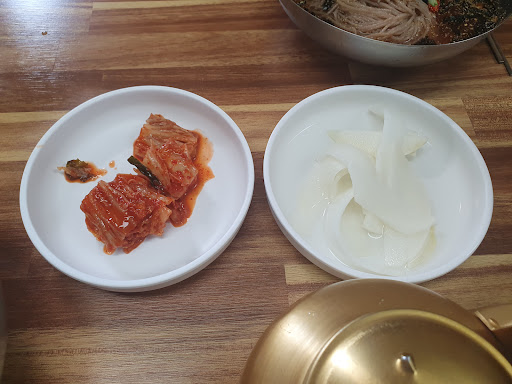 김치는 배추김치보다 동치미를 많이 곁들이는데, 동치미 국물을 육수에 살짝 섞는 집도 있음.