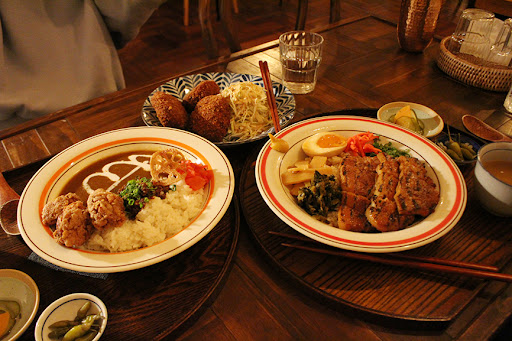 #가라아게카레 11,000원 요 정갈한 카레정식은 딱봐도 인스타감... 친구가 핸드폰 셔터 누르느라 바쁘고 바로 옆에 스탠드조명이 밝혀져서 더욱 먹음직스러웠다눙⁽⁽ ◟(灬 ˊωˋ 灬)◞ ⁾⁾ 가라아게....카레에 찍어보니 환상적... 안에 야들야들하고 부드러운 속살에 먹으면 먹을수록 일본에 빠져들어요