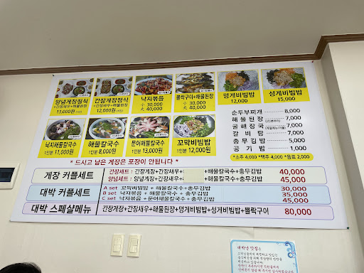 흠...기대를 많이했던 탓인가 실마도 컷던 식당이다. 문어칼국수 2인 주뮨했다. 생각보다 빠르게 나오긴했다. 야채는 거의없는 수준이다. 쫑쭁썰은 파와 매운고추 조금 애호박 약간정도이다. 홍합은 신선하고 탱글하니 맛있었다. 문어는 작은거 뱐마리정도 였던것같다. 문어머린 질겼고 다리도 두꺼운 부분은 질겅질겅 좀 질긴 느낌이었고 다리 끝부분만 야들야들 연한 느낌이었다. 면은 앏은면을 쓰는데 가게 영업방식인지는 모르겠으나 봄 불은 느낌의 면이었다. 쫄깃한 면을 좋아하시는 분들에겐 불호 부드러운 면을 선호하시는 분들에겐 호 일듯하다. 게도 맛있었고 모시조개도 맛있었다. 국물...이 국물이 좀 불편했던게 칼국수가 나오자마자 후추향이 확 풍긴나. 바로 앞에서 다량의 후추가루를 뿌린듯할 정도로 후추향이쎄다. 후추를 싫어하시는 분들에겐 불호이다. 다른 부분들도 그리 특별할것 없지만 이 국물때문에 개인적으로는 비추천 하고싶다. 시원한 맛을 좋아하시는 분들에겐 후추향이 큰 걸림돌이니 패스하시라고 말씀드라고 싶고 중식당에 후추향 쎈 우동을 좋아하시는 분들이라면 한번 도전해보시라고 말씀드리고 싶다. 바지락 칼국수나 동죽 칼국수같은 시원한 칼국수를 원하시는분들께는 비추천한다. 아니면 주문할때 후추를 뿌리지말고 따로 달라고 요청을 해보셔라...가능할지는 모르겠으나 후추향이 싫으신 분들은 주문시 부탁을 해보시기...