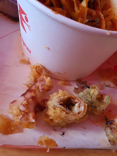 Read more해산물튀김인데 오징어.새우가 별로 신선해보이지도 않고 새우껍질 안벗겨서 먹는데 개불편, 생선튀김도 가시있음. 튀김반죽이 너무 두껍고 너무기름져서 같이준 샐러드아니면 다먹기힘듬. 아니 맛이없어서 다못먹음. 안이 온통 빨강이라 사진도 안이쁘게나와요 레알비츄. 이 튀김.떡볶이.샐러드.음료가 2인세트인거같은데 왜 음료는 하나밖에 안쥬는지.. 이퀄리티의 맛과양의 세트를 2만3천이나 주고...