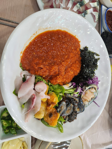 Raw fish is good, very fresh. Side dishes are so-so. Overall, it's an ok place but nothing fancy. So many similar restaurants around, and I can't tell if this one is any better or worse. They advertise their price is cheaper than others though. For that reason, they'll charge extra 5000won for fish soup which you can have for free in...