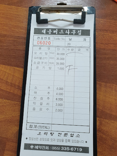 Read more최소 3만원이 넘는데 대놓고 현금 강요라니...살코기는 보통 소금구이나 불고기에 사용하기 때문에 오리탕에는 고기가 많진 않지만 뼈에 붙은거 잘 발라먹고 국물이랑 같이 먹으면 부족하진 않음..근데 오리탕인지 무탕인지 무가 엄청 많은데 감자도 좀 넣으면 좋으련만..국물자체가 매콤하기 때문에 아이랑 같이 먹을려면 미리 얘기해야함..밑반찬으로 같이 나오는 것들중에 김치 말곤 아이 먹일만한게 없음 사람 많을때 가면 테이블벨이 없기 때문에 자리에 앉아서 음식 나올때까지 1시간 정도 기다려야함...