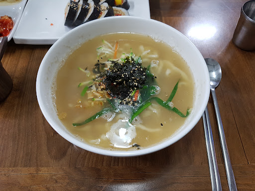 Read more상당히 정갈한 음식을 보여준다. 들깨칼국수는 잡내없이 부드럽고 고소한 인공적이지 않은 맛이다. 국산을 쓰신다고 하는데 먹기 전에 듣지 못해도 좋은 재료를 쓰심을 직감할 수 있었다 ^^. 여기 유부김밥도 몹시 별미이다. 애기들이 오면 애기 국수를 공짜로 주신단다. 실패가...