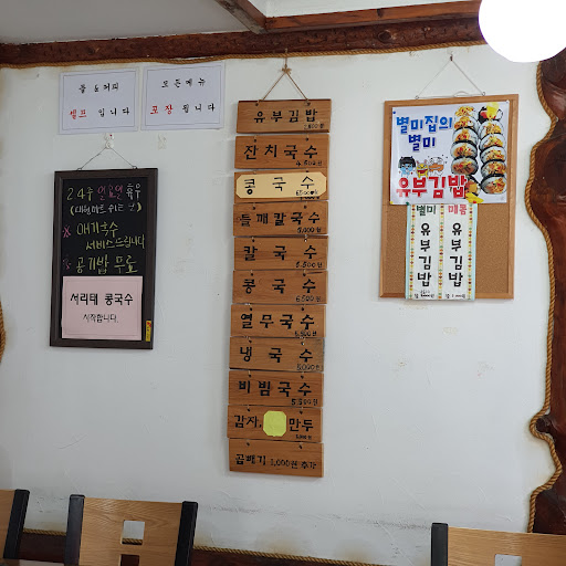 Read more저는 한번씩 혼밥해야할때 들러요. 아이들 데리고가면 아기의자있구요. 아기국수 따로 챙겨줘요.밑반찬으로 나오는 무짱아찌? 그거 전 너무좋아하는데 고추도 같이들어가있어서 애들먹기엔 안좋았어요.저희 애들 국수종류 먹을때 단무지라도 반찬으로 먹는데 애들한테는 매워서 그냥 국수만 먹였어요.어른칼국수 수제비육수에는 어른이 느끼지 못한 얼큰한맛이 약간 있는지 저희...