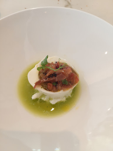 음식리뷰 @고르곤졸라 피자: 만족스러움 @식전빵:트러플 버터 풍미가 좋았고, 빵은 쫄깃함 @아뮤즈부쉬:재밌는 느낌의 음식 @토마토샐러드: 상큼한 소스와 토마토와 바삭한 식감의 과자가 꽤 조화로웠음. 인상적인 음식이었음 @트러플스프:버 섯향이 그윽한 스프. 맛있고 부드러움. 무난한 음식 @관자요리:관자가 맛있다가 끝에 비린맛이 느껴짐(시어링이 잘 안되어서 그런것인지 의문) @도미요리(*선택, 추가비용 1만원):다시마에 숙성했다고 함. 잘 모르겠고 생선은 부드럽고 소스가 상큼하면서 쌉싸름함에 애매한 불편함이 느껴짐 @전복요리(*선택, 기본구성):상큼한 소스에 전복 요리. 퀴노아의 톡톡튀는 식감이 좋았음. *선택요리중 전복요리 추천: 식사양이 적고, 밸런스가 적절함. 도미는 음식은 훌륭하나 소스에서 호불호가 있을 수 있다고 생각함 +이때부터 입안이 느끼해짐. 와인이 필요하다고 생각했던 순간임 @이베리코(돼지,황제살?):겉은 훈연이 잘되었고 살은 부드러운 식감과 고소한 맛이 느껴지며, 소스와 잘 어우러지는 요리임(best) @안심스테이크(메인,추가비용3만원):고기자체는 부드러우나 마데이라 소스의 맛은 뭔지 모를정도로 맛이 느껴지지 않았고 4가지 곁들인 소스와 퓨레와는 무난했지만 스테이크를 잘 살려준다는 느낌은 없었음(음식의 장점이 부각되지 못한다고 느껴서 개인적으로 실망이 컸던 부분임) @비스크파스타(메인,기분구성):갑각류 소스의 맛이 나는 무난한 해산물파스타인데, 메인요리로서의 뚜렷한 맛을 낸다는 생각이 날정도의 훌륭한 요리는 아니었다는 생각임. +메인 요리가 끝났으나 접시를 치우지 않고, 꽤 오래 기다렸음. 서빙에 대한 아쉬운 순간이었음. 식사시간이 길어짐에 대한 피곤함과 메인에 대한 실망감에 텐션이 많이 떨어진 상태였음 @포레스트(후식):초코렛과 얼그레이 아이스크림이 나쁘지 않은 맛이었으나 초콜릿양이 식사 후반임을 감안했을땐 양이 많았다. @커피,티:사진은 없고 따뜻한 커피 주문함. 생각보다 커피맛은...