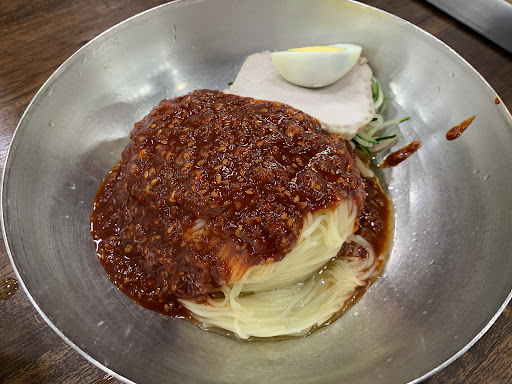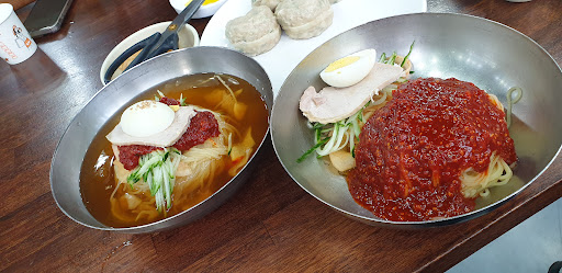 Gimhae Gaya Wheat Noodles are really delicious with cucumber, meat, and egg garnish based on meat broth. The broth has Chinese medicine in the meat broth and the sauce has a lot of garlic in it. It's really delicious if you eat half of the bibim wheat noodles and pour cold broth. There is a big dumpling on the side menu, and it's so delicious that people who come to the restaurant order all the dumplings. A big dumpling full...