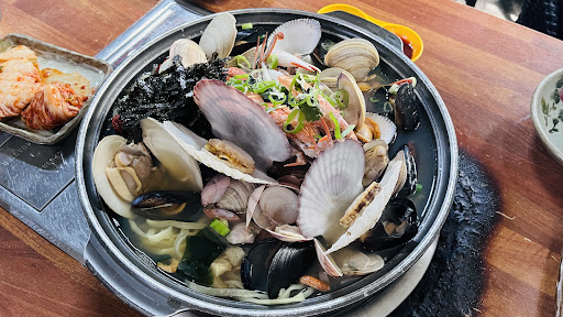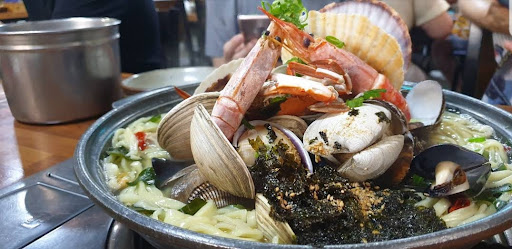 Read more내부는 바깥에서 예상한것 보다 넓은데 식탁도 그렇고 주방도 그렇고 좀 오래된 느낌이지만 그렇다고 비위생적이진 않다. 그냥 오래 된 건물일뿐.. 마치 해물탕 처럼 나오는 칼국수는 면이 해산물에 같혀서 보이지 않음. 요즘 칼국수 한그릇 가격 생각하면 가성비 좋다. 파전은 바삭하게 부쳐서 나오는데 바삭함을 위해서인지 오징어도 얇게 썰려있다. 바삭함의 극대화. 김치도 칼국수와 함께하기 딱 좋게 맛있어서 칼국수가 더 잘 넘어가는듯 했다. 여름이라 비빔국수도 한번 맛을 보았으면 좋았을건데 아쉽게도 다음...