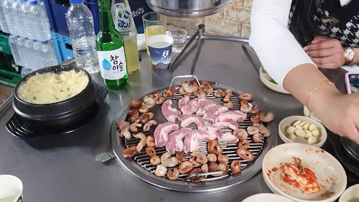 เป็นร้านที่ไม่ใหญ่มาก บรรยากาศร้านโต๊ะเก้าอี้สไตล์วินเทจ อาหารสะอาดมากกกโดยเฉพาะไส้ย่างไม่มีกลิ่นคาวหรือ กลิ่นอื่นๆเลยได้รสชาติของใส้หมูเต็มๆคำ ย่างหอมๆแล้วตามด้วยน้ำจิ้มหมูย่างเกาหลี ใส้ย่างพริกกระเทียม หอมซอย กิมจิ วาซาบินิดหน่อยแล้วห่อด้วยผักสลัดหรือใบงา อร่อยมากครับ ที่ร้านบริการดีมากเทคแคร์ทุกโต๊ะ ถ้าเราย่างไม่ทันจะมีน้องๆของร้านช่วยย่างให้ด้วยครับ มีเครื่องดื่มบริการด้วยครับ บอกเลยที่นี่ ก็ติดห้าดาวอีกที่นึงเลยครับ ราคาจัดเป็นเซ็ท ชุดเล็กหมื่นกว่าวอน ชุดใหญ่ สองหมื่นกว่าวอน ถ้ามาสองคนแนะนำชุดใหญ่เลยครับ ชุดเดียวคุ้ม แต่ถ้าใครอยากสั่งเพิ่มก็ได้ตลอดเลยครับมีหลากหลาย...