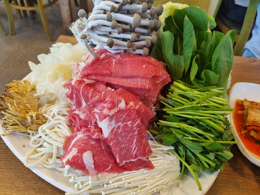 Read more쇠고기 버섯샤브 모든 야채 버섯 따로 있어 본인이 알아서 넣어 먹어야항 3인이면 중 정도면 충분 고기양 생각보다 푸짐함. 육수 추가 가능하니, 드시는 중간중간 추가해서 드시기를 버섯을 어느정도 드셨음. 매운양념(무료) 추가해서 얼큰하게 칼국수면 넣어 마무리 깔끔하니 군더더기 없는 친절하심 다 드시고 문앞에 있는...