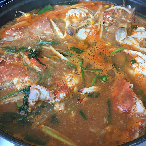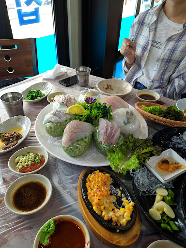 Read more방문한지는 조금 되었으나 이곳의 요리 구성같은 곳은 흔하지는 않을 것 같다. 푸짐하다. 대표적인 찌개는 삼식이 찌개 그런데 최소 2인이상이어야 가능. 반찬중에 고구마 반찬과 먹지는 못하는 조류같은 것에 감싸져서 나온 찰밥이 기억에 남는다. 콘버터와 생선구이 맛도 좋다. 보통 많은 사람들이 어수산시장에서 회를 직접구입후 근처의 식당으로 가져가 찌개를 시켜 같이 먹는다. 한편, 근처에 있는...
