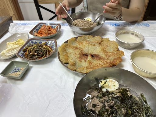 명시적이진 않지만 일일 한정 판매하는 강판으로 손수 갈아서 만든 감자전이 두툼하고 특유의 감자향이 같이 느껴져 좋다. 막국수에 대한 설명이 잘 적혀져 있으며 탄력좋은 국수에 오묘한 감칠맛의 새콤한 육수를 곁들여 먹으며 김치로 간을 해서 먹으면 깔끔하고 시원한 맛이 딱 좋다. 주말 점심에는 마을분들과 관광분들이 같이 오셔서 기다리시시는 분들도 있다. 작지만 아늑하고 깔끔한 곳. 자연 재료 중심으로 맛을 내서 부담스럽지 않고...