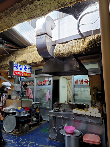 Read more재래시장 내 작은 골목안에 있습니다. 비빔,잔치,콩 3개 메뉴의 국수 중 맛보지못한 콩을 제외하고는 다 맛있어요. 비빔국수 경우, 다른 국수집과 비교한다면 깔끔한 맛보다는 걸쭉한 느낌인데 만족스럽습니다. 두 번 가면 한 번은 줄을 서야 먹는 곳입니다. 위생은 다소 낮은 점수를 주고싶지만, 프렌차이즈 아닌 시장 안 분식집의 눈높이로 보면 이해되는 수준이고. 내부, 메뉴는...