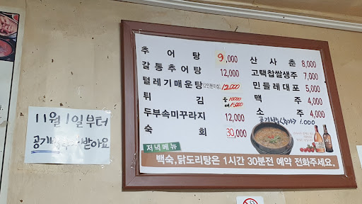 Read more맛은 좋아요~ 장사가 잘돼서 그런지 별로 친절하진 않아요...ㅎㅎ 서비스로 나오는 전도 바삭하니 맛있어요. 추어탕은 바로 주문 가능하고 털레기 매운탕은 미리 예약 주문해야해요~ 2019년 11월 1일부터 추가 밥 값 천원 받네요. 근데 기본 공기밥 량이 좀 적어요. 일반적인 것 보다 2/3정도? 밥 많이 드시는 분은...
