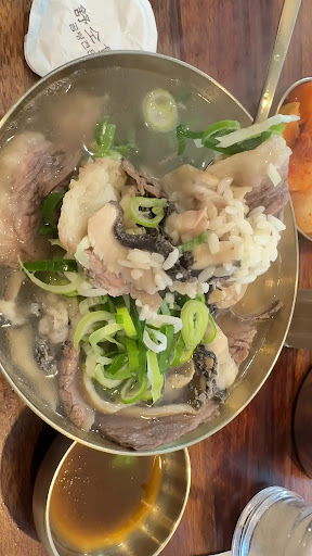 Beef gomtang soup. Of course, my husband and I have visited more than 20 times and the taste has not changed over the past 3 years. The soup is clear and refreshing with no fat. My grandmother also enjoys the gomtang here. Packaging Iogong gomtang is a must for everyone in our family after eating. No.1 favorite...
