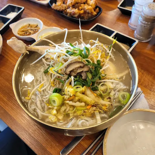 Read more웬지 정원이 딸린 집을 수리해서 만든 식당 느낌이다 일단 물을 마시는데 뭔가 도라지 향이 나서 물어보니 헛깨수 차였다 일산쪽에 국수집이 진짜 많은데 여기의 차별점은 닭을 활용한 삼계탕 비슷한 메뉴와 탕수육도 있다는 것이다