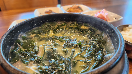 Read more가자미미역국이 젤 나았음. 국물이 진함. 소고기는 조개랑 섞여서 맛이 애매함. 서비스는 쒯더뻑. 직원 아줌마가 얼마나 일의 효율성을 추구하는지 물티슈 좀 갖다 달라 말해도 밥이 나오기 전까지는 갖다 주지도 않음. 심지어 손님이 딸랑 나 포함 두 테이블 있던 상황. 하고 있는 일도 없었음. 기다리다 기다리다 다시 말 하니까 귀찮은지 몰랐다는 식으로 대답하더니 밥 나올 때까지 있다가 같이 갖다줌. 거의 공산국가급 서비스. 엄마가 저 사람 원래 저런다고 함. 오늘만 그런 게 아니었음. 내가...