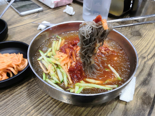 Read more보쌈 느끼해서 안좋아하는데 여기는 담백하고 간이 되어있어 맛있음 미나리랑 명태회도 주는데 같이 먹으면 맛있다 족발도 야들야들해서 맛있고 불족발은 별로 안맵고 딱 적당한듯. 특이하게 국물이 많긴한데 밥이랑 먹어도 맛있겠음 막국수도 쏘쏘. 선지해장국을 술국처럼 주는데 간이 딱 좋아서 소주계속 시킴. 먼가 평범한것을 모아놓은거같은데 전부 평균...