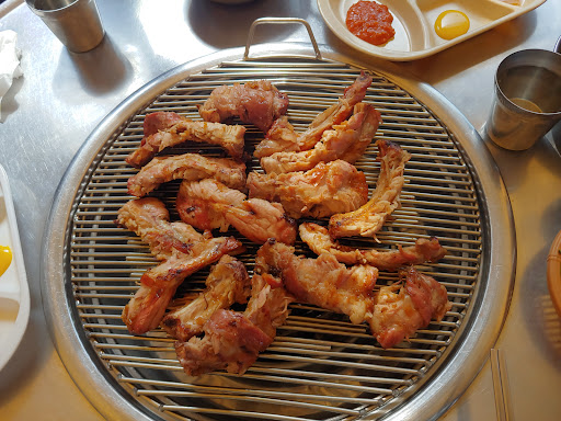 Read more고기는 두말 필요없는 맛이다. 고기는 갈비와 통삼겹, 목살 중 선택하면 참나무 바베큐로 다 익혀 나오고 개인 테이블 숯불에 올려 마무리로 익히며 먹는 시스템이고.,고추장 양념된 고기도 메뉴에 있다. 냉면과 비빔국수, 잔치국수가 있는데, 비빔국수와 잔치국수는 갈때마다 거를수 없는 맛이다.김치찌개도 메뉴에 있던데, 아직 맛보지 못했다. 주치공간도 부족치는 않은 정도로 구비되어있다.. 단, 여름에 야외는 물론, 실내도 야외와 크게 다름없는 구조라서 에어컨의 혜택을 볼수없어, 아쉽다.30도가 훨씬 넘는 폭염에 갔지만, 여러 장치 덕분에 신기하게도 크게 덥진않았지만,아쉬움은 있다.. 내게 가장큰 아쉬움은 청결이다..구조적으로 청결하기 어려운 환경이기도 하지만, 청결에 크게 신경쓰지않는 느낌이다. 이 두가지 이유로, 음식맛에 비해서는 자주...