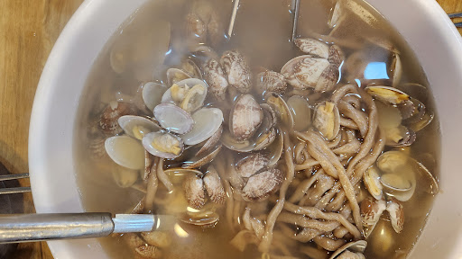 The price was reasonable, and the portion was generous. The noodles were chewy and delicious, and they included plenty of clams. The restaurant was bustling, with almost every table occupied. The barley rice served before the noodles, when mixed with soybean paste, was quite tasty, and the kimchi was...