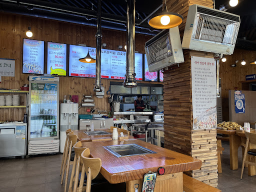 Read more장어 소금구이 진짜 맛있음. 탱글탱글하니 입에서 녹음. 반찬중에 씻은 묵은지가 있는데 여기에 싸먹으면 정말 맛있음. 점심 때 장어를 먹는 손님이 별로 없는지 간판에는 셀프라고 적혀있지만 반찬도 리필해주시고 장어도 정성껏 구워주시고 다 해주셔서 감사했음. 장어나 갈비를 시킨 사람들은 된장찌개가 2000원이고 맛있었음. 와이파이도 되고 식혜도 공짜로 먹을 수 있음. 마지막에 후식 막국수 먹었는데 비냉처럼 달달하니 맛있었음. 그리고 후식용이라 일반 막국수보다 3000원 저렴해서 5000원임. 가게 앞에 주차장 있고 내부에 화장실 있음. 자리도 널찍 널찍해서...