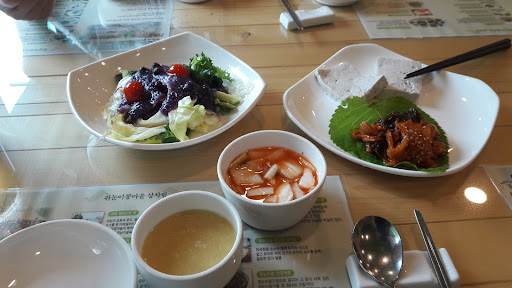 Read more유기농콩요리 전문점. 첫방문자는 조금은 찾아가기가 어려울수 있음. 만약 큰길가 입구를 지나면 빙돌아서 가야하는 약간의 불편함이 있음. 한정식 코스로 나오고 전반적으로 깔끔하고 정갈한 느낌. 정식 2만,3만,4만원 있고 두부류는 직접만든다고 하심. (입구 왼쪽에 두부제조용 솥이 있음) 코스의 대부분이 콩이나 두부를 이용한 요리임. 본채 말고 안쪽으로 들어가면 수많은 장독대가보이고 그뒤로 커피숍 건물도 있으나 문을 열었는지 닫은건지 모르겠음. 현재 주변 도로 공사로인하여 비오는 날...