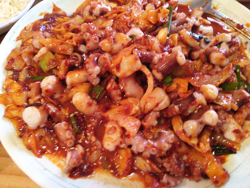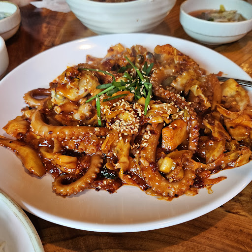 Read more살이 통통한 낙지볶음이 끊임 없이 숟가락을 부른다. 매운 맛을 순화 시키려고 넉넉히 제공되는 콩나물과 함께 밥에 비벼서 먹는데, 양이 제법 많아서 자칫 남는 수가 있다. 낙지볶음이 그다지 짜진 않으므로 매콤한 맛을 좋아한다면 기쁘게 즐길 수 있는 맛집. 다른 곳에 비해 단 맛이 적어 또한 좋음.