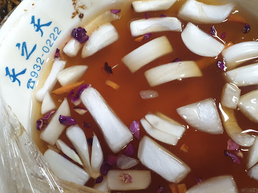 덩어리진 면 덩어리 위에, 아까 본 부순 얼음시판육수가 있습니다. 오이 몇 점 외에는, 미리 소분해둔 듯 한 해파리 조각이 있고, 거의 다먹어서야, 대략 1.5cm쯤 되는 알새우 세개가 밑바닥에서 나옵니다.