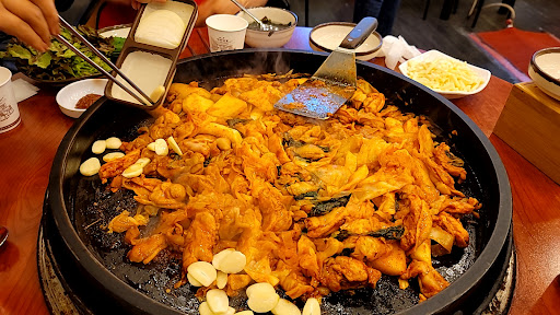 닭갈비 먹고 싶어서 구글에서 근처 닭갈비집을 찾다가 방문하게 됐는데 들어가는 입구에서 풍기는 냄새부터 좋아서 "아~ 맛있는 닭갈비 겠다"라고 생각하게 되었습니다. 세명이어서 3인분 시키고 자리에 앉으니 미역냉국을 주시더라구요. 새콤달콤 국물과 시원한 미역이 조화를 잘 이뤄서 맛있게 먹었더니 제옆에 계시던 이모님이 한그릇 더 드릴까요? 하셔서 네~ 더주세요^^ 하고 맛나게 먹었습니다. 친절하시고 웃는 모습이 따뜻해서 좋았네요🤗 치즈 사리 추가로 해서 사진처럼 완성 된 닭갈비 위에 뿌려주시는데 잘 녹아들어서 먹을 때 고소하니 좋았습니다. 상추와 깻잎, 마늘이랑 같이 주셔서 쌈으로 싸먹는 맛도 좋았네요. 요기 근처에 가시게되면 닭갈비 드시고 싶으실 때 방문해 보시기를 추천합니다. (다 먹고 밥 1인분 볶아서 먹었는데 고기랑 좀 남은거 포장해서 싸왔어요^^ 맛있어서...