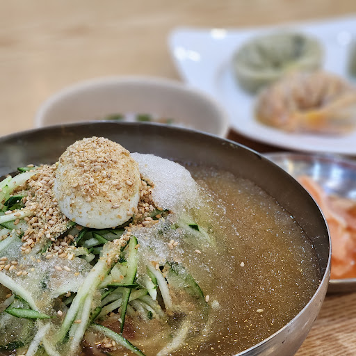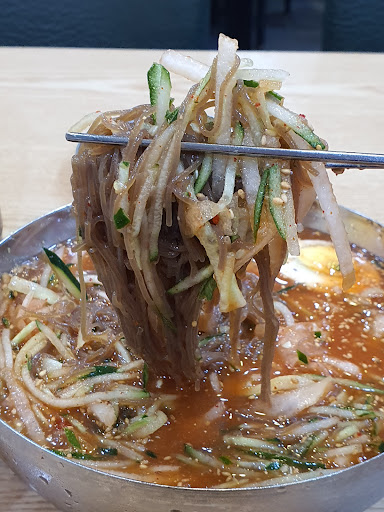 Tasty Korean noodle place with a hidden vegan option. This place is so popular and is even vegan friendly. Their bibim naengmyeon can be vegan if you ask them not to put a boiled egg and frozen broth on top. My noodle had very generous amount of veggies and their sauce was simply so good. For sure I am visiting again. Nice staffs and clean, enjoyable...