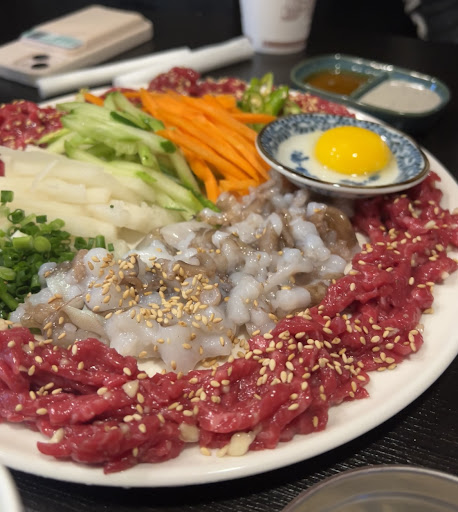 The raw meat and octopus dish portion was generous! And the portable bbq with the rib meat was amazing. I had the combo! Their pineapple ice shaving was such a refreshing dessert after a huge meal! The food was so good one of the best meals Iโve had in Korea. The staff seem quiet but they are actually super kind. After dinner I went straight across the road to the convenience store to buy some...