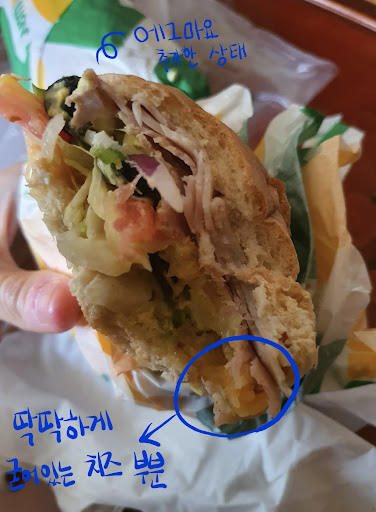 그러나 알바생은 첨부터 끝까지 고르라고 강요 했어요. 퉁명스럽게 빵부터 치즈,야채,소스까지 매번 매번 고르라고 강요했고, 부모님이 잘 모르니까 알아서 넣아달라고 매번 얘기했으나 고르라고 했습니다.;;;