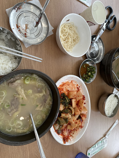 Came here with around 15 people for dinner at 5pm. They served us very quickly. I love how our server handed us our seollongtang (์ค๋ ํ) with a wrench-like tool lol. The soup is seasoned very well so it doesnโt require extra salt (but you can add more to your liking). It comes with a generous portion of meat and noodles. I topped it off with pepper, green onions, and green peppers (a nice kick). I personally loved their kkakddoogi (๊น๋๊ธฐ / ์๋ฐ์ง) side dish a lot more than the...