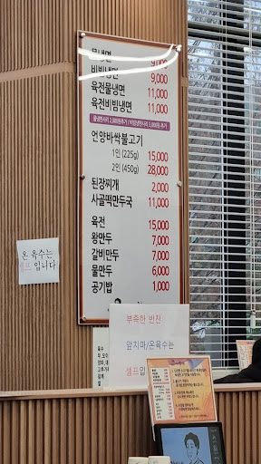 Read more냉면 전문점에서는 그냥 냉면만 먹는게 좋을 것 같네요..이 집의 언양식불고기는 시킨지 5분만에 나왔는데 뜨겁지 않네요. 그리고 맛은 좀 달고 식감은 퍽퍽하네요. 냉면은 소문대로 괜찮습니다. 근데 컵에 담아서 먹는 육수는 미지근하고 맛도...