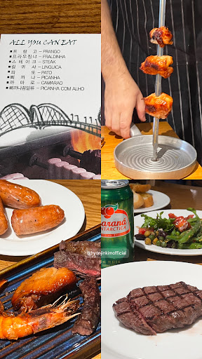 We go there pretty often, if we have something like birthday or another event. You can eat unlimited it starts with the steak on the picture. After finishing the first full round, they will ask which one you want to get more of. Once you tell them you are done with meat, they will give roasted pineapple with cinnamon. The experience is always nice and the staff is always...