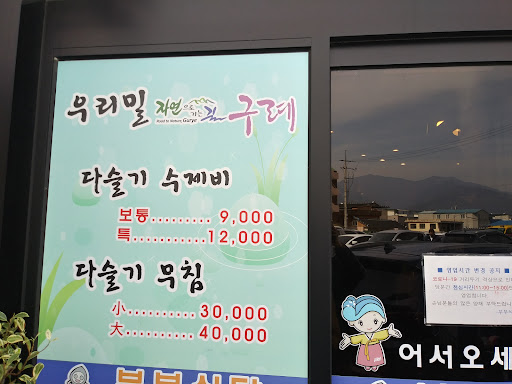 Specialized in cuisine made of fresh water snail. There are two kinds (Sujebi and Muchim). The former (photo) is soup as a meal and the latter is a special one...