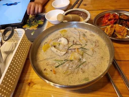 들깨칼국수 개인적으로는 살짝 삼삼했는데 김치와 반찬과 먹으니 딱 맞습니다. 가게내부는 넓지는 않구요. 아담합니다.