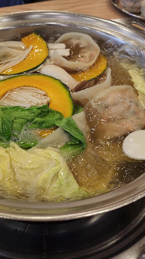 Read more국물이 맑은데 칼칼하고 단백한 맛. 첨엔 색다른 맛없이 그냥 한끼 해결하고자 했는데 먹고나니 어느정도 만족스러운 식사 같다는 느낌이 든다. 최소 2인분 주문이며 1인 기준 만두가 4개 들어있다. 전골 3인분 주문하니 만두가 12개 나옴. 만두전골에 만두와 함께 큰 배춧잎, 버섯, 야채, 호박 등이 들어있다. 슴슴하고 단백한데 칼칼한 국물. 어르신들이 좋아할 만한 맛. 만두피는 공장에서 공급받고 만두속은 직접 만들어 빚어 낸다. 찐만두도 제법 맛있다. 가격이 요즘 물가대비 저렴하다. 식당 바로 앞에...