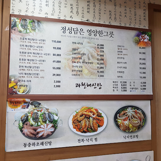 Read more과천 별양동 제일상가 입점. 해신탕 전문점으로 맑은 국물에 싱거운 맛을 내세움. 호불호 갈릴 수 있지만 담백한 맛이 참 좋았음. 사진만 봐도 '여기는 푸짐하게 차려준다'는 점을 느끼실 것. 사장님도 매우 친절하시며, 네이버에 후기 올리면 낙지를 서비스로 주기도. 과천, 평촌 일대 해신탕...