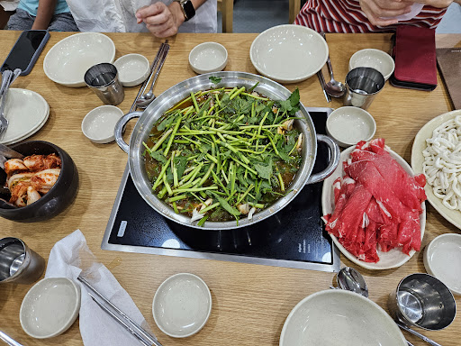 Read more과천 서울대공원 주차장 뒷편 후미진 지역에 위치한 칼국수 전문식당. 의왕에 본점이 있고, 샤브버섯칼국수로 유명한 맛집이다. 항상 많은 손님들로 붐벼서 번호표를 받고 대기하는 것이 기본이다. 고추장 베이스의 국물에 미나리와 야채, 버섯, 얇은 소고기를 데쳐서 먹고, 이후 면을 끓여서 먹는 방식이다. 그렇게 맵지는 않지만, 칼칼하면서 약간 달착지근한 맛도 느껴진다. 같이 제공되는 면은 가게에서 직접 제조한 수타면이라 더 쫄깃해서 좋다. 반찬은 배추 겉저리 김치 한가지인데 맛있는 편이다. 다 먹고는 볶음밥을 시켜서 직접 볶아 먹을수 있는데, 역시 맛있다. 다만 식당 내부가 넓지 않아 많이 기다려야 하는 부분과, 주차장도 넓지 않고 주차관리자도 없어서 좀...