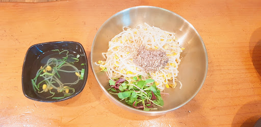 This restaurant is famous for bean sprout soup, and I also recommend this menu. It is always served when it’s still hot. It's 5000won for one dish, and I thought it was very cheap because the amount is enough for one person. I recommend having kimchi together because the kimchi is very delicious, too. The waiters were not very friendly, but they were hard-working because there were a lot of people. I think they tried their best. There are many families having meals together, so it's quite noisy, but it wasn't that...
