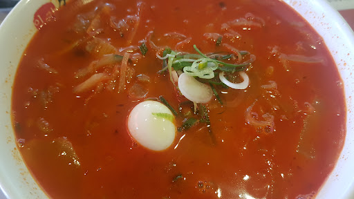 짬뽕 일반적으로 접하는 해산물 육수와는 달리 일본의 돈코츠라멘이 떠오르는 진한 돈골기반 육수가 인상적입니다. 해산물은 장식정도로만 들어가 있고, 양파, 배추, 파 등이 주로 들어가 느끼함을 덜어줍니다. 면의 식감은 쫄깃하다 라는 느낌보다는 적당히 부드러우면서 씹는 맛이 있습니다. 맵기는 신라면 정도 됩니다.
