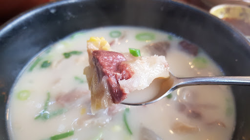 The beef bone soup is the best. Very milky and tasty. Kimchi is good too. I dont like bone soup. But this one, i can eat everyday. But, it is...