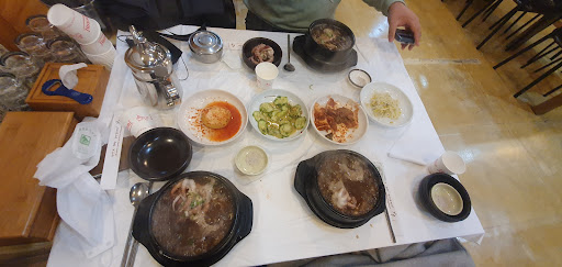 반찬은 4종류 배추 김치 깍두기 오이반찬 콩나물 배추 김치는 젓갈을 많이 넣어서 짜요 그런데 맛있음 중독성도 있고 생지 인데 김장철 이라 생지가 나온것인지 아님 원래 생지 나오는지는 알수 없습니다 지금 12월 기준으로는 생지가 나옴 그다음 깍두기 무가 단단 합니다 그런데 좀 익은듯한데 이런 종류에는 이런 깍두기가 맛있다 생각하는 분들도 있습니다 저는 아님 오이는 무침 같은데 친구들은 좋아 했습니다 마지막 콩나물 크기가 적당하고 씹는 식감이 좋았습니다 간은 약한데 김치랑 같이 먹는다면 좋았음