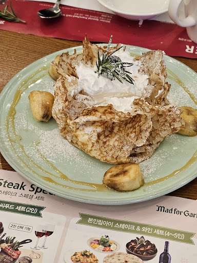 서비스와 별개로 음식은 전반적으로 나쁘지않았습니다. 마늘빵부터 시작해 마늘 파스타 마늘 스테이크 등 마늘을 활용한 다양한 요리를 맛볼 수 있었습니다. 크리스피한 마늘 칩과 볶아서 뭉갠 마늘 등 마늘시즈닝의 풍미가 굉장히 좋았습니다. 하지만 스테이크는 두께가 얇고 질이 떨어졌습니다. 가격은 비싼편이나 그 값어치를 하는 느낌은 아닙니다. 그래도 회원 가입하면 다양한 할인 프로그램이 있으니 방문하셔야 한다면 꼭...
