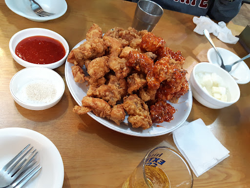 양동을 갔다가 계속해서 기다리는데 번호표가 없으니까 너무 번거롭더라구요. 저희 들어올때 분명 서성이는 사람들만있어서 안에서 기다렸는데 갑자기 쑥 들어와 자기들이 먼저왔다 그러면서 겨우 자리났는데 그사람을 앉히더라구요. 그리곤 저희한테 계속 기다리라고만하고 불쾌해서 수일로 갔어요. 일단 비주얼은 양동보다는 갑이더라구요. 양동은 기름이 탁해서 통닭이 검었어요. 뭐 그만큼 많이 튀기니까한 입 베어무는 순간! 바삭! 음. 쥑입니다. 이쪽으로 오길 잘 했네요. 근데 양이 어마무시하게 많더라구요. 왜지? 했더니... 노계닭인듯해요. 퍽퍽함이 많앙. 제 입에는 영계를 선호하는 옛통이 제격인듯 합니다.ㅎㅎㅎㅎ 그래도 맛은 있었어요. 후라이드에 간을 약간만 넣어도 게안겠다 싶긴 했네요. 퍽퍽함은 아마도 양동도 마찬가지 일 듯합니다. 거기도 노계 더라구요. 각자의 취향은...